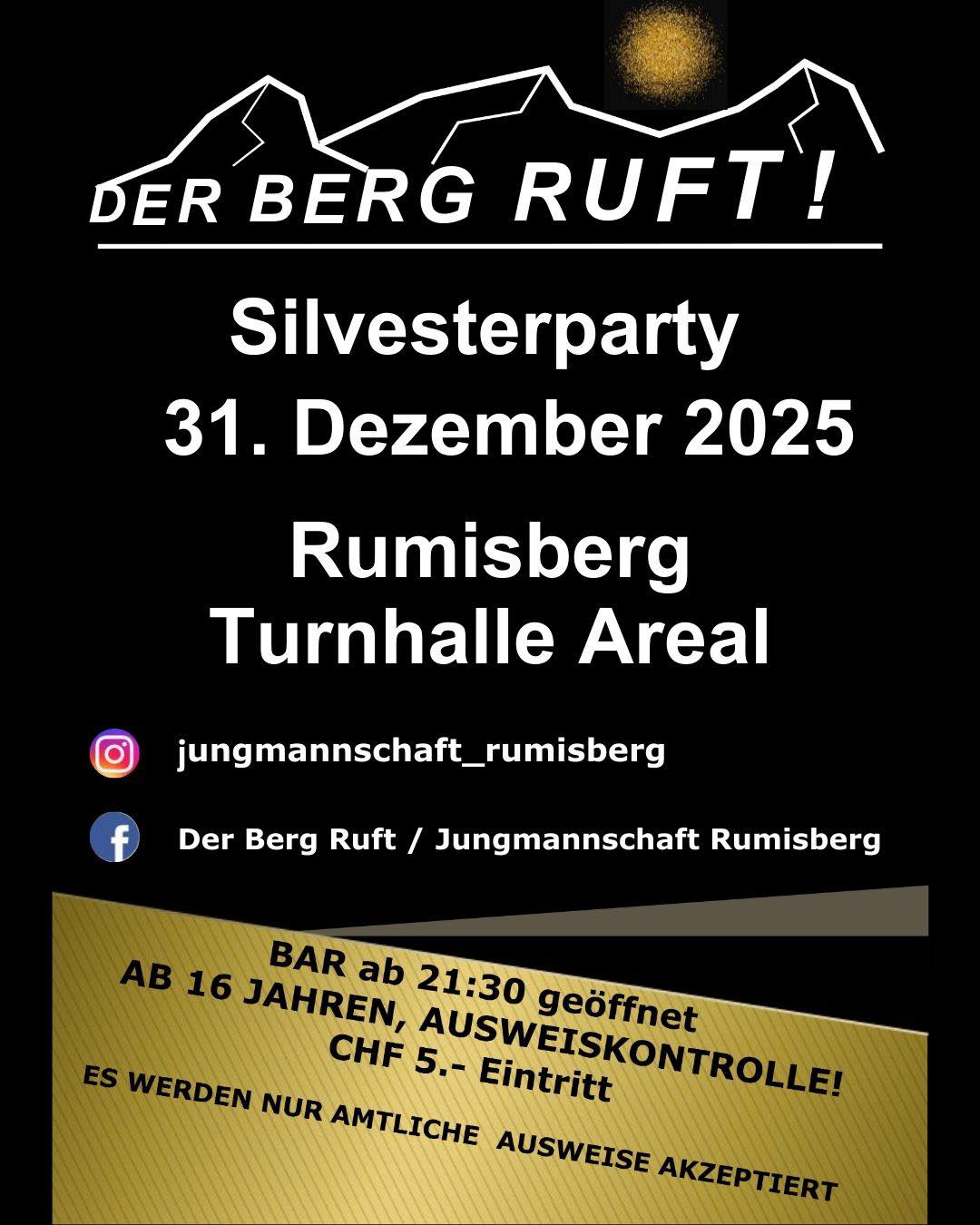 Wenn das Jahr zu Ende geht, erwacht in Rumisberg ein besonderes Brauchtum. Die Jungmannschaft Rumisberg lädt euch ein, das alte Jahr gebührend zu verabschieden. Bei unserem traditionellen Umzug vertreiben wir mit Lärm und Licht die «alten Geister», um Platz für einen positiven Start ins neue Jahr zu schaffen – eine einzigartige Atmosphäre in den dunklen Winternächten.